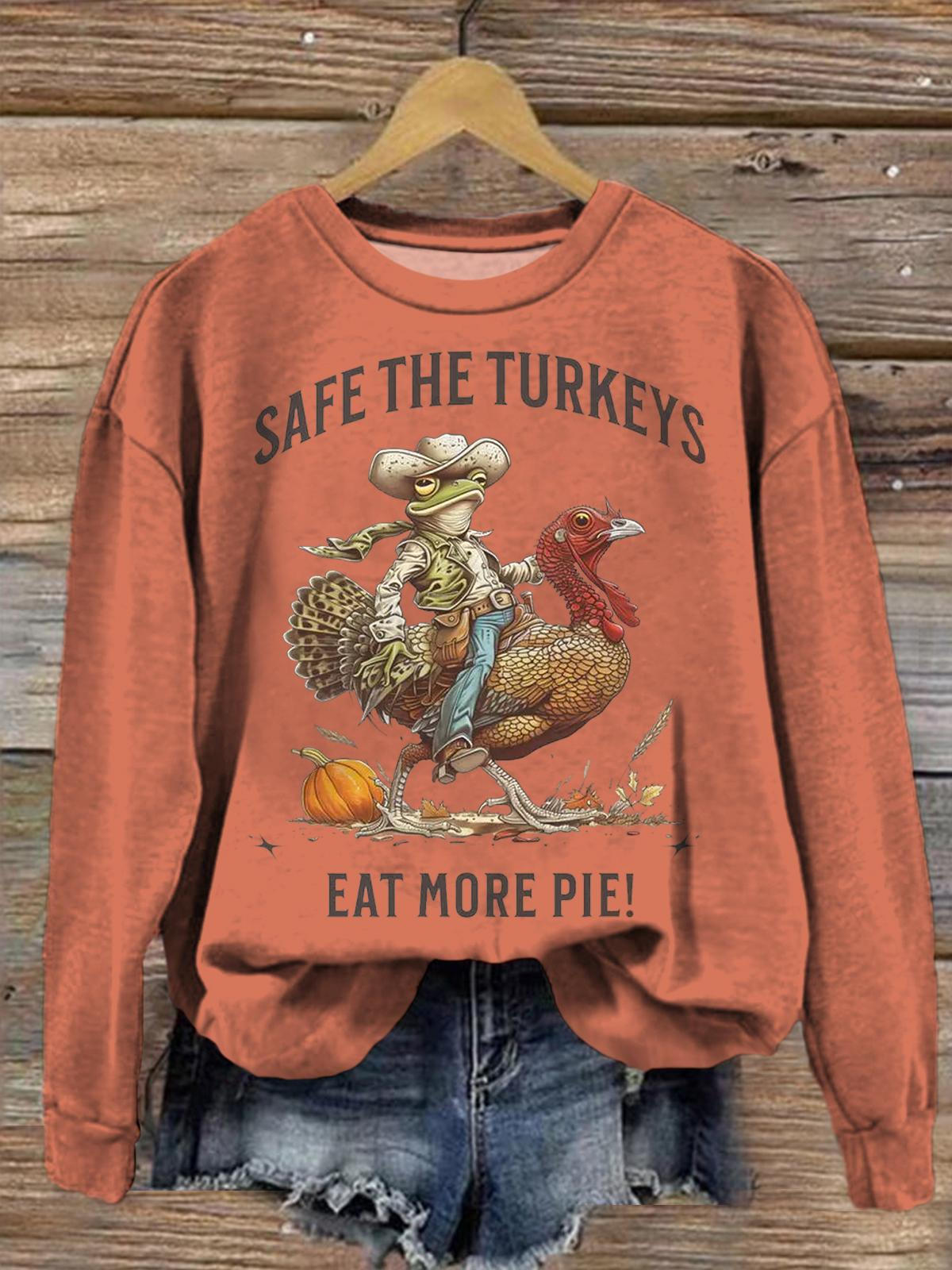 Women's Star The Turkeys Eat More Pie Round Neck Long Sleeve Top