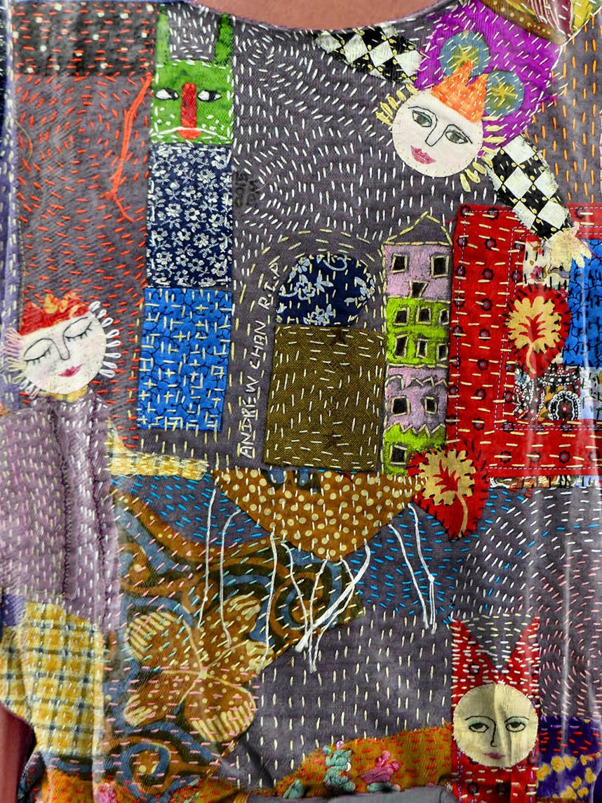 Women's Vintage Flower Pattern Splicing Art Print T-shirt