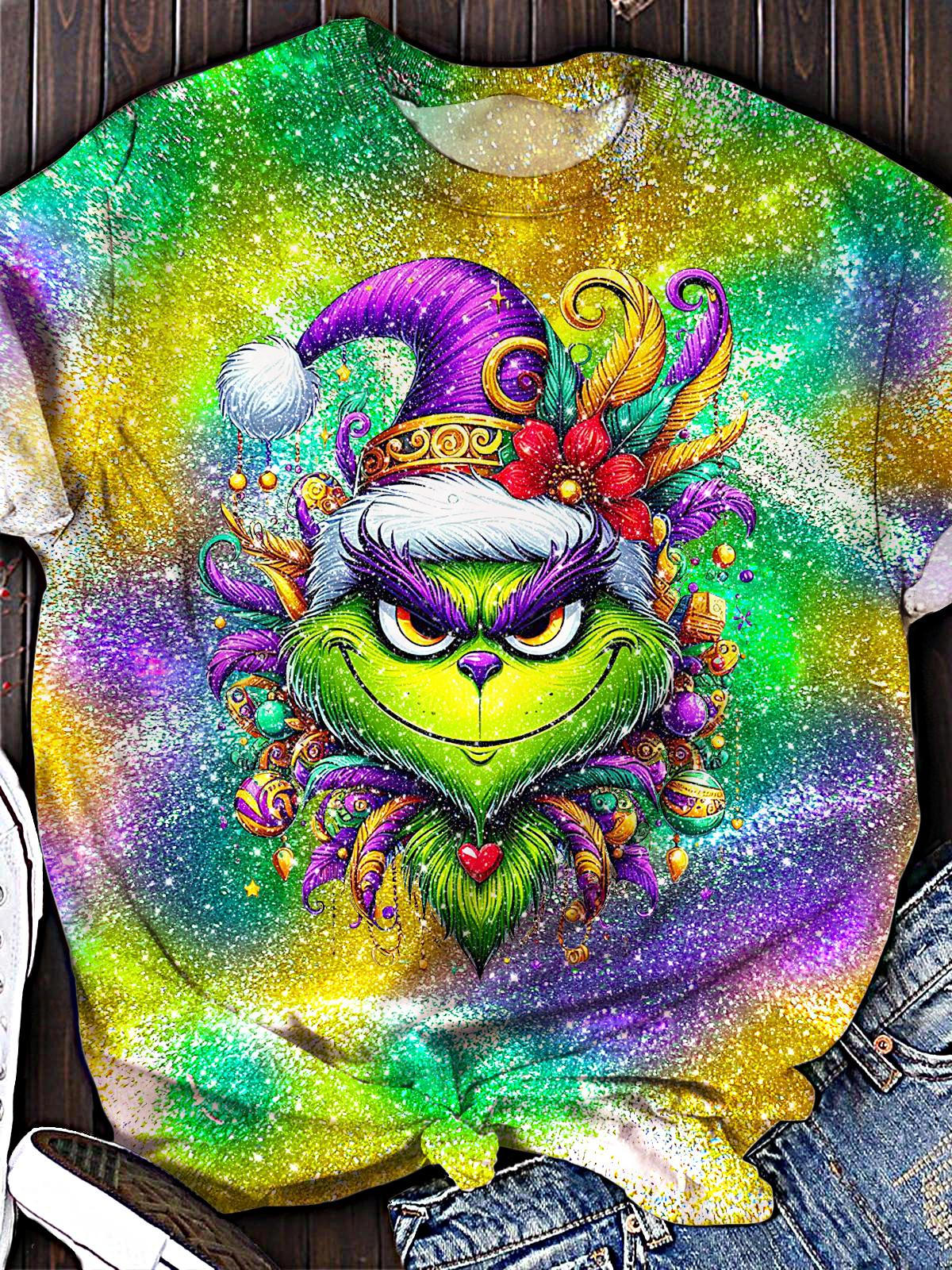 Women's Vintage Green Mardi Gras Crew Neck T-shirt